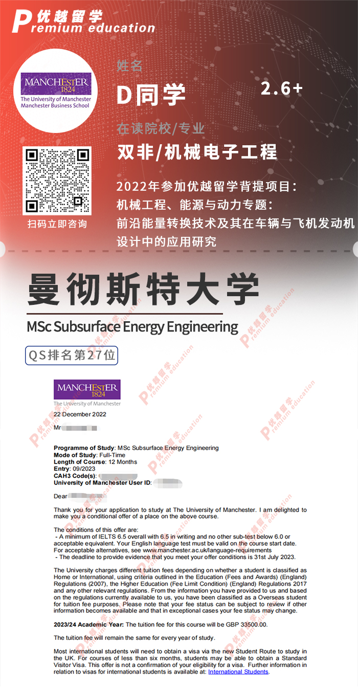 2023offer:恭喜代同學獲得曼徹斯特大學地下能源工程理學碩士通知書