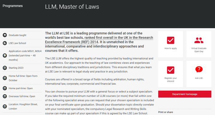 LSE的LLM 課程向擁有法學(xué)本科學(xué)位的申請人開放,通常只提供給在法律學(xué)習(xí)中取得非常好的成績。例如,英國法學(xué)學(xué)士學(xué)位的第一名或非常高的第二名。