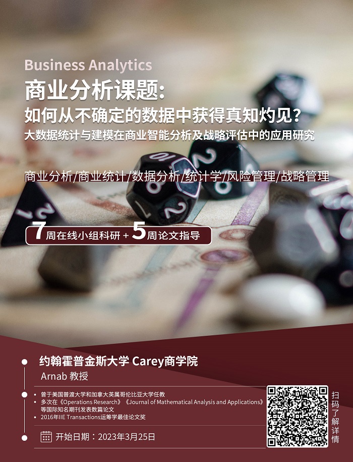 1.該項目適合商業(yè)分析、數(shù)據(jù)科學、風險管理、統(tǒng)計學,應用數(shù)學等專業(yè)或者希望修讀相關專業(yè)的學生。具有代數(shù)及微積分基礎的同學優(yōu)先;