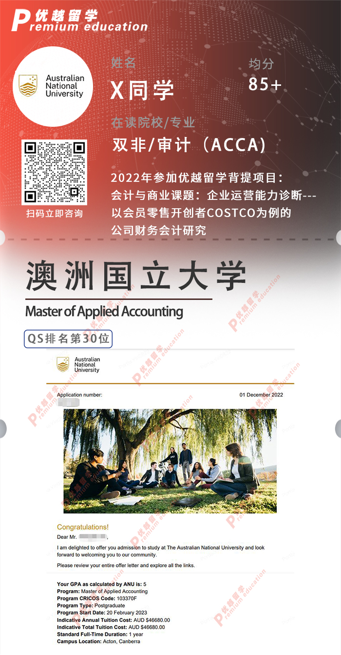 2023offer:恭喜X同學在碩士留學申請中獲得澳洲國立大學應用會計碩士通知書