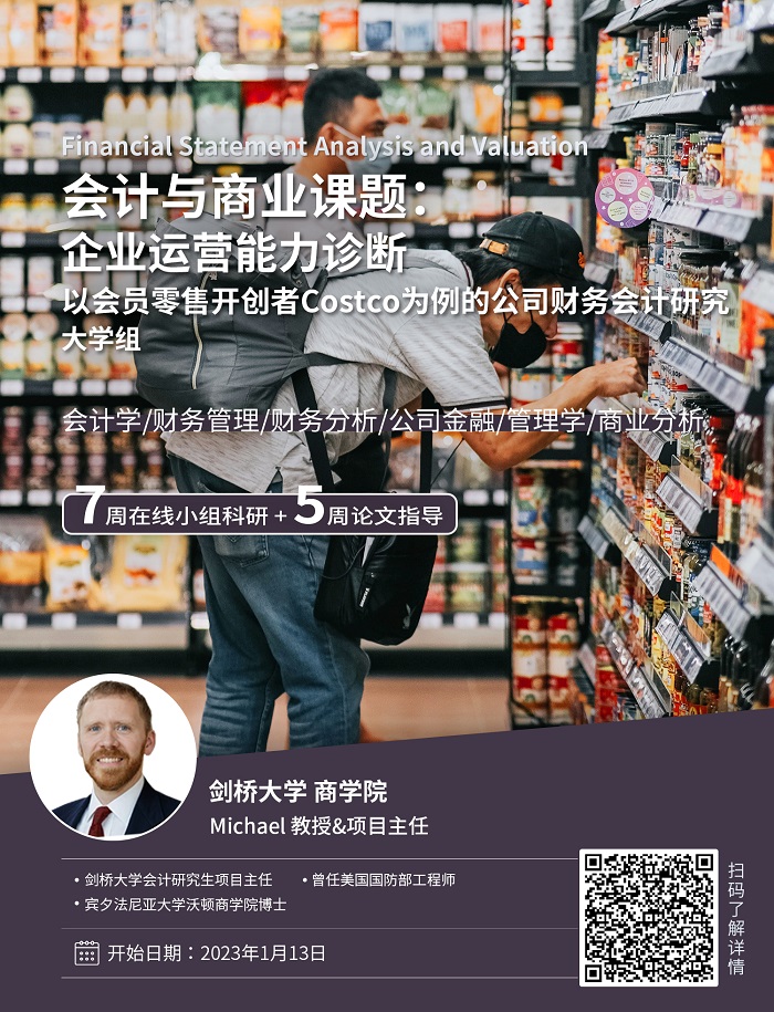 1.本項目適合會計學、管理學、商業(yè)分析等商科專業(yè)方向,希望運用“商業(yè)語言”獨立解讀與分析財報,以及未來希望申請商科方向?qū)I(yè)或有創(chuàng)業(yè)想法的學生;學生需要具備基礎(chǔ)會計學基礎(chǔ)。