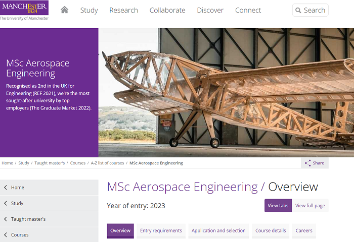 曼大MSc Aerospace Engineering隸屬于機械、航空航天和土木工程學(xué)系,在英國的航空航天設(shè)計,直升機,傳熱,空氣動力學(xué),計算流體力學(xué),湍流建模和流量診斷方面有著悠久而獨特的傳統(tǒng)。