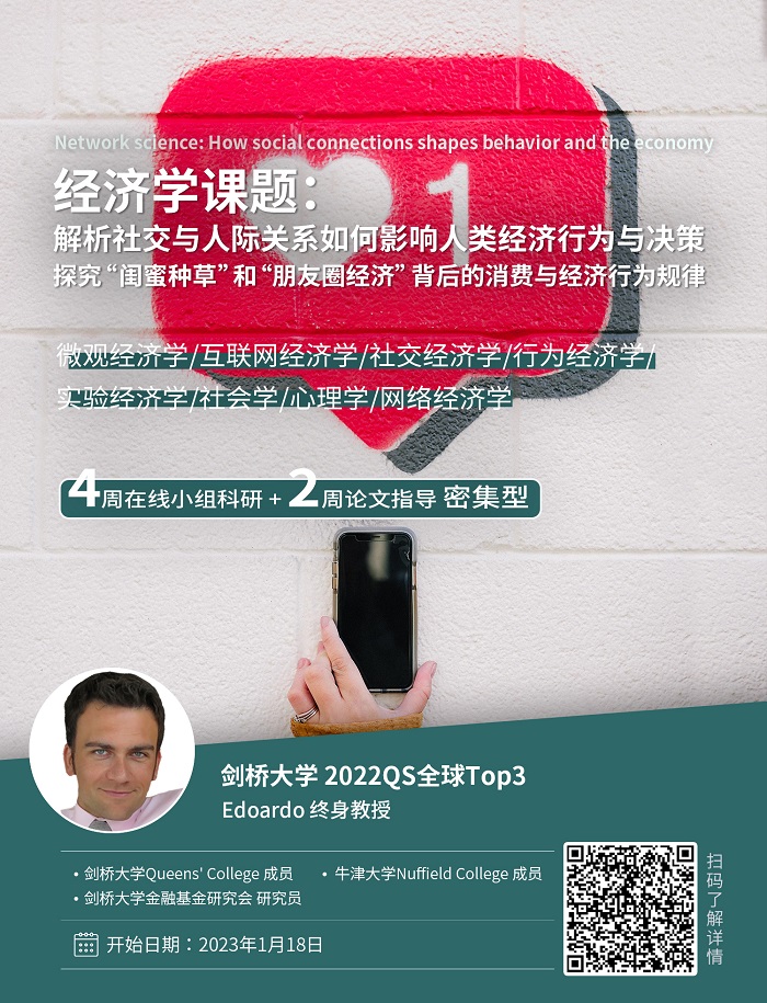 1.該項(xiàng)目適合微觀經(jīng)濟(jì)學(xué)、行為經(jīng)濟(jì)學(xué)、實(shí)驗(yàn)經(jīng)濟(jì)學(xué)、心理學(xué)、互聯(lián)網(wǎng)經(jīng)濟(jì)、社交經(jīng)濟(jì)、社會(huì)學(xué)等專業(yè)或希望修讀相關(guān)專業(yè)的學(xué)生;具備經(jīng)濟(jì)學(xué)、心理學(xué)基礎(chǔ)知識(shí)的學(xué)生優(yōu)先。
