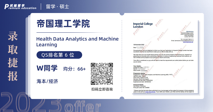 2023offer:恭喜W同學獲得帝國理工學院IC健康數(shù)據(jù)分析與機器學習碩士通知書。