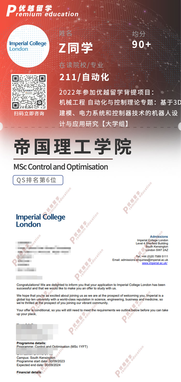2023offer來(lái)襲!恭喜Z同學(xué)在碩士留學(xué)申請(qǐng)中斬獲帝國(guó)理工學(xué)院控制和優(yōu)化碩士通知書!