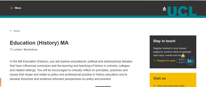 至少具有相關(guān)學(xué)科的二等英國學(xué)士學(xué)位或同等標(biāo)準(zhǔn)的海外資格,以及對(duì)歷史教育的濃厚興趣(通常由教學(xué)經(jīng)驗(yàn)或與教育相關(guān)的經(jīng)驗(yàn)證明)。