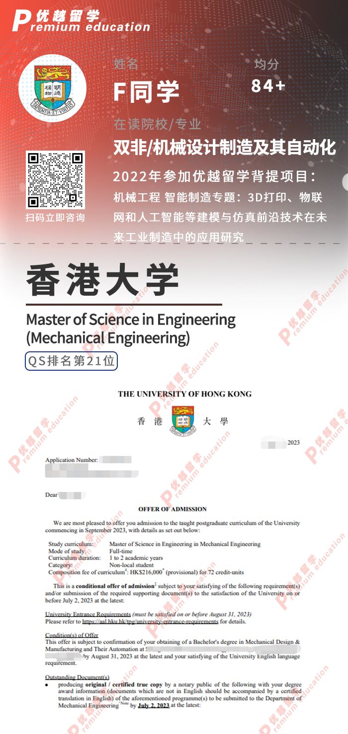 2023offer來(lái)襲!恭喜F同學(xué)在碩士留學(xué)申請(qǐng)中斬獲倫香港大學(xué)工程學(xué)(機(jī)械工程)碩士通知書(shū)!