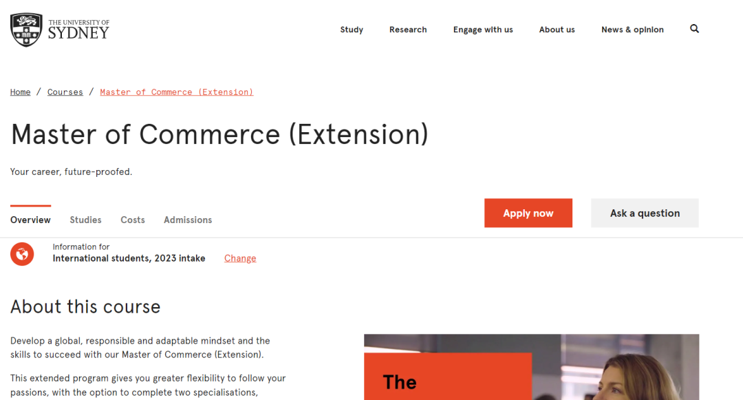 商業(yè)碩士(擴(kuò)展)適用于之前沒有商業(yè)經(jīng)驗(yàn)但希望改變職業(yè)或希望進(jìn)行更長時(shí)間的課程以完成以下課程的學(xué)生:兩個(gè)面向未來的專業(yè),參與全球交流計(jì)劃,或研究論文。