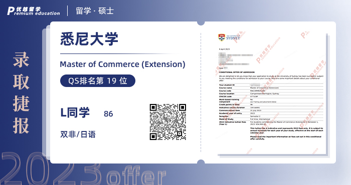 2023offer來襲!恭喜L同學(xué)在碩士留學(xué)申請(qǐng)中斬獲悉尼大學(xué)商務(wù)拓展碩士通知書!
