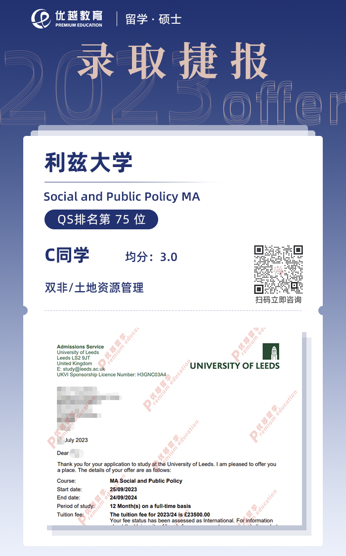 2023offer來襲!恭喜C同學(xué)在碩士留學(xué)申請中斬獲利茲大學(xué)社會與公共政策碩士通知書!