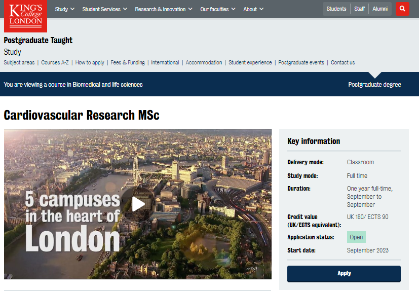 2023offer來襲!恭喜C同學(xué)在碩士留學(xué)申請中斬獲倫敦國王學(xué)院心血管研究碩士通知書!
