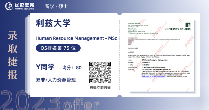 2023offer來襲!恭喜Y同學在碩士留學申請中斬獲利茲大學人力資源管理碩士通知書!