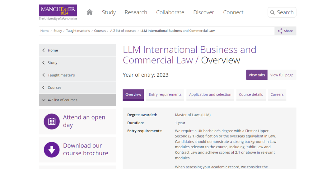 本專業(yè)申請要求英國學(xué)士學(xué)位具有第一或第二(2.1)分類或法律的海外同等學(xué)歷。候選人應(yīng)在與課程相關(guān)的法律模塊(包括公法和合同法)中表現(xiàn)出強(qiáng)大的背景,并在相關(guān)模塊中取得 2:1 或以上的分?jǐn)?shù)。