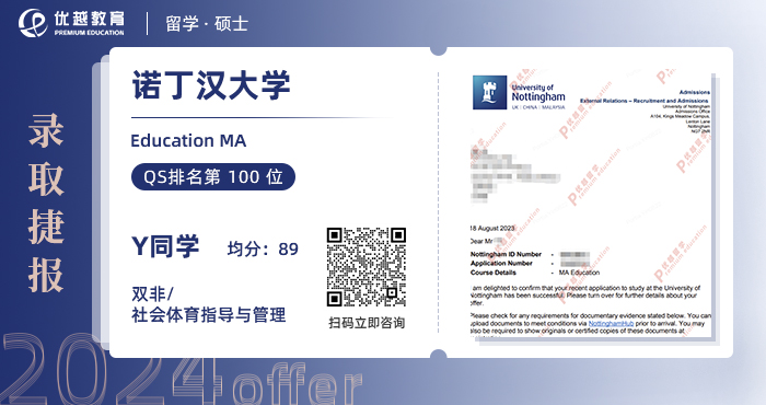2024offer來襲!恭喜Y同學(xué)在碩士留學(xué)申請(qǐng)中斬獲諾丁漢大學(xué)教育學(xué)碩士通知書!