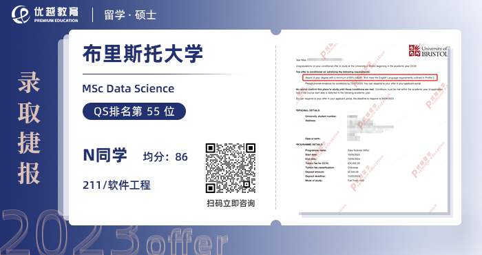 2023offer來襲!恭喜N同學(xué)在碩士留學(xué)申請中斬獲布里斯托大學(xué)數(shù)據(jù)科學(xué)碩士通知書!