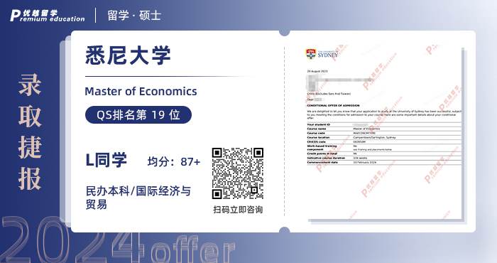 2024offer來襲!恭喜L同學在碩士留學申請中斬獲悉尼大學經(jīng)濟學碩士通知書!