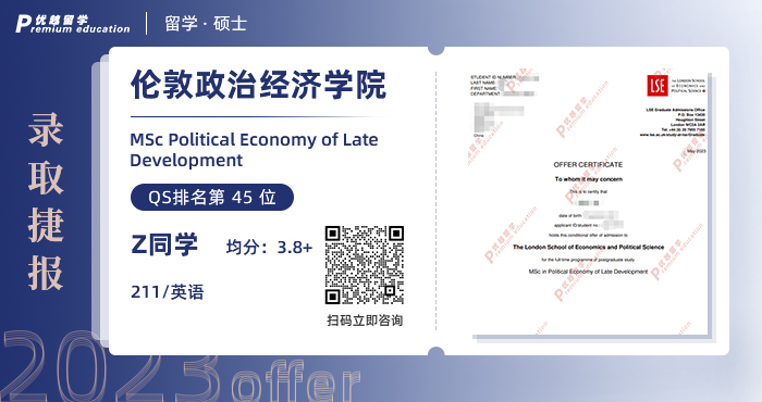 2023offer來襲!恭喜Z同學(xué)在碩士留學(xué)申請中斬獲倫敦政治經(jīng)濟學(xué)院LSE后期發(fā)展政治經(jīng)濟學(xué)碩士通知書!
