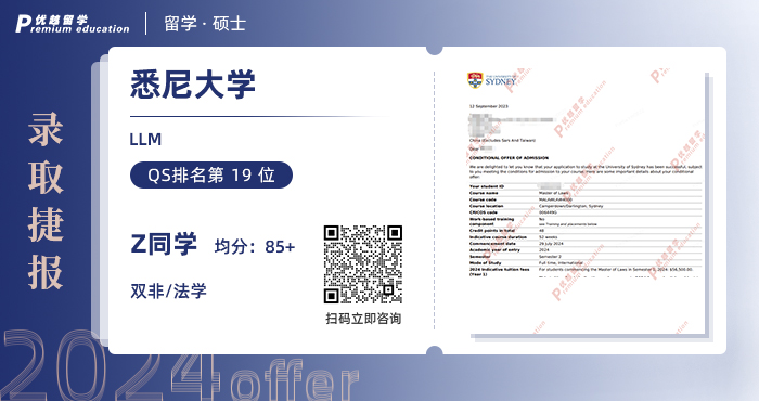2024offer來襲!恭喜Z同學(xué)在碩士留學(xué)申請中斬獲悉尼大學(xué)法學(xué)LLM碩士通知書!