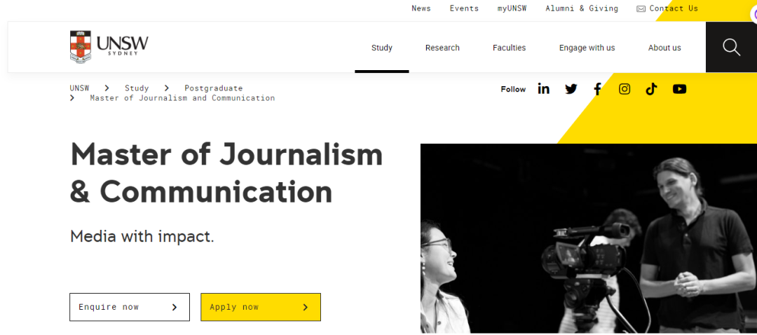 新南威爾士大學新聞與傳播碩士是當代新聞、媒體研究和傳播領域的兩年制全日制研究生大學學位。新南威爾士大學媒體專業(yè)一直位列全球51-100名,在澳大利亞大學中處于領先地位。該碩士學位將使學生掌握實踐技能和理論知識,以了解和塑造全球新聞媒體和傳播行業(yè)。學生可以學習支撐新聞道德的概念,并通過專業(yè)經驗將其付諸實踐。除此之外,還將有機會選修包括全球化、政治和氣候變化在內的人文學科專家的選修課。