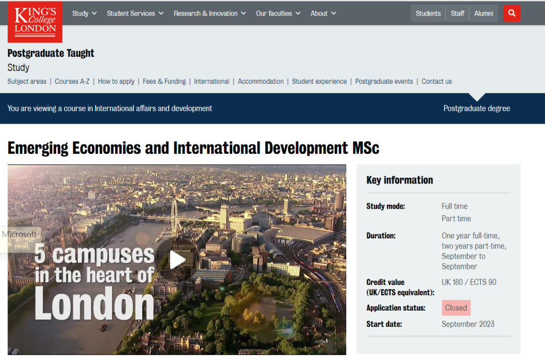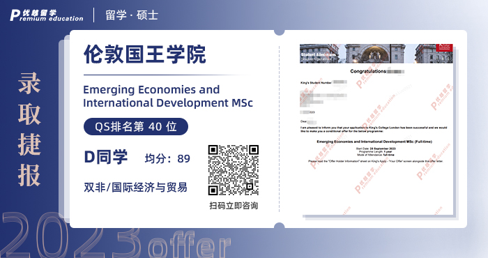 2023offer播報(bào)!恭喜D同學(xué)在碩士留學(xué)申請(qǐng)中斬獲倫敦國(guó)王學(xué)院KCL新興經(jīng)濟(jì)體和國(guó)際發(fā)展碩士通知書(shū)!