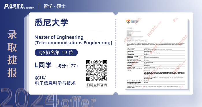 2024offer來襲!恭喜L同學(xué)在碩士留學(xué)申請中斬獲悉尼大學(xué)電訊工程碩士通知書!