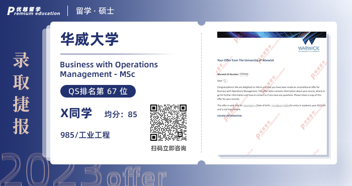 2023offer來襲!恭喜X同學在碩士留學申請中斬獲華威大學商業(yè)與運營管理碩士通知書!
