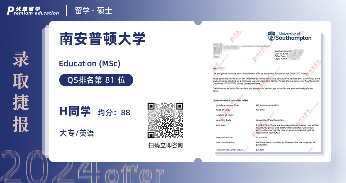 2024offer來襲!恭喜H同學(xué)在碩士留學(xué)申請中斬獲南安普頓大學(xué)教育學(xué)碩士通知書!