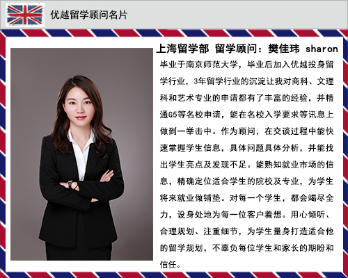 學(xué)生情況:沈同學(xué)是在大二上學(xué)期快結(jié)束的時(shí)候找到我們。她則是一個(gè)極有目標(biāo)的學(xué)生,只想沖刺G5院校,所以一開(kāi)始的GPA就在3.6左右,但對(duì)英國(guó)學(xué)校和專業(yè)的了解程度有限,不知道要對(duì)G5學(xué)校做到大把握的成功率需要再做什么。蘇州大學(xué)本身就是211,在學(xué)校上占了一定優(yōu)勢(shì),在分?jǐn)?shù)上也已經(jīng)算中上的。但沈同學(xué)有個(gè)問(wèn)題就是考慮以后轉(zhuǎn)專業(yè),因?yàn)橛?guó)本身很少有行政這個(gè)專業(yè)開(kāi)設(shè),學(xué)生自身對(duì)本專業(yè)也不是很感興趣,所以想轉(zhuǎn)教育。所以除了幫助沈同學(xué)一起規(guī)劃在校學(xué)術(shù)分提高的同時(shí),也建議和推薦一些教育相關(guān)的實(shí)習(xí)和實(shí)踐,利用寒暑假時(shí)期去參加,這樣對(duì)轉(zhuǎn)專業(yè)申請(qǐng)教育來(lái)說(shuō),多少有些銜接的幫助。最后,在一起努力下,成功拿到UCL的MA Education(教育)的Offer。