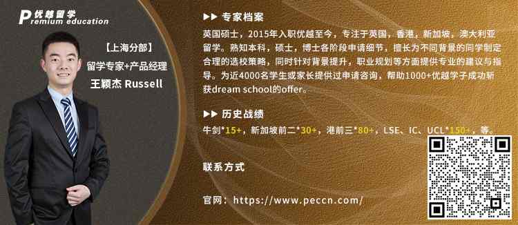 Russell是優(yōu)越留學(xué)的資深顧問,他擁有英國碩士學(xué)位,專業(yè)背景使他深入了解這些國家的留學(xué)環(huán)境。他的專業(yè)領(lǐng)域涵蓋了本科、碩士和博士等各個階段的申請細(xì)節(jié),這讓他能夠為不同背景的學(xué)生量身定制合理的選校策略。