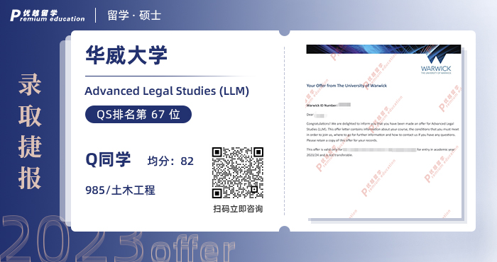 最終,Q同學(xué)成功獲得了英國華威大學(xué)的錄取通知,并現(xiàn)在正在攻讀他的碩士學(xué)位。他對優(yōu)越留學(xué)表達(dá)了由衷的感謝。